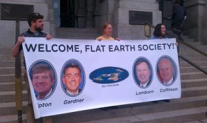 Several Colorado groups took members of Congress to task today over their failed energy policies, political rhetoric, and ties to industry. Clean Water Action, Colorado Fair Share Alliance, the Checks and Balances Project and local activists gathered on the steps of the state capitol early this morning in anticipation of a U.S. House Energy and Minerals Subcommittee field hearing on federal oversight of oil and gas fracking operations. Rep. Doug Lamborn chairs the committee, and Rep. Mike Coffman is also a member. The groups greeted Lamborn and the hearing with a banner that said, “Welcome, Flat Earth Society” – a reference to a recent National Press Club speech by Interior Secretary Ken Salazar where he argued Republicans were out of touch on energy policy and the realities on the ground. The hearing is nothing but a Big Oil funded charade put on by Lamborn and Coffman, charter members of the Flat Earth Society. Coloradans need to grab their air, water, public lands, and democracy because Big Oil wants to buy them all. The groups also called the hearing a waste of taxpayer dollars, especially given the fact that the Interior Department’s new draft fracking rules were actually met with praise by some in industry this week. "The 'Flat Earth Society' members of Congress have fallen flat on doing what's right - providing relief on gas prices and promoting real energy independence,” said Matt Garrington, co-director of the Checks and Balances Project. “Coffman and Lamborn continue to put Big Oil profits first.” The groups noted that the oil and gas industry receives $9.4 billion annually in special tax breaks, funds that would be better spent investing in long term solutions such high tech vehicles, the next generation of renewable fuels, and transportation improvements. Joining the event was David Bouchey of Aurora, who criticized his Representative, Mike Coffman, for supporting Big Oil and moneyed interests over Coloradans. "As a constituent, I'm not happy that Mike Coffman has supported letting my unemployment benefits expire while supporting tax breaks for the 1% oil companies," said Bouchey. One reason for why Republicans Coffman and Lamborn may be abusing their authority to run special interest legislation for Big Oil and hold messaging hearings could be the disparity in campaign contributions Republicans receive from industry. According the Center for Responsive Politics, the oil and gas industry gave nearly 88% of their campaign contributions to Republicans. So far this cycle, Rep. Coffman has received $55,000 from the oil and gas industry, and Rep. Doug Lamborn has received $29,250. “Today’s hearing is just another way Rep. Coffman and Lamborn are paying back their oil and gas campaign contributors,” said Wockner. “We should be ending taxpayer handouts to Big Oil and reinvesting in American energy solutions that will provide relief and real energy security.” FACTS ABOUT COLORADO ENERGY DEVELOPMENT- Colorado oil production was at an all-time high in 2011 at 33,403 thousand barrels.