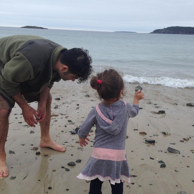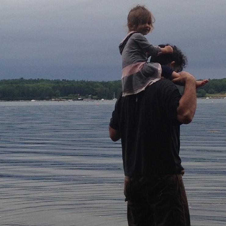 The smell of rain, the floating in it, the slipperiness of our bodies swimming in it. The way that floating with ears under the surface mutes all sounds except my own heartbeat and blood flow. The way we gather around it, flock to it, retreat at it and in it. The way that it causes me to slow down and focus on just being in it. The childhood memories of meeting at it with special people. Learning to steer the canoe and– to anxiously, then exuberantly – land the canoe just right onto the sand to dock at the “Big Rock” to jump in, over and over, laughing and shouting. The way that lying in the ocean, floating on top, parallel with the waves and shore lends its rhythm, rocking and never stopping, even when we go away from it. Watching my baby girl step into a tidal pool or lean down over a shallow creek or the lake’s shore to examine the landscape below the water with a fierce and unforced concentration. The way that a day on the water, fishing, is a destination vacation for my partner, and a true retreat. Skipping rocks and having someone watch the many skips with you. The reflection of fall’s golden sun and the rainbow of fall leaves on a mirror-like surface. The haunting call of loons.