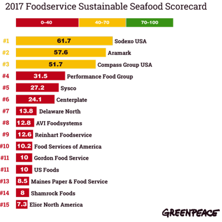 Here's Greenpeace's ranking of food service companies by ocean friendliness:
