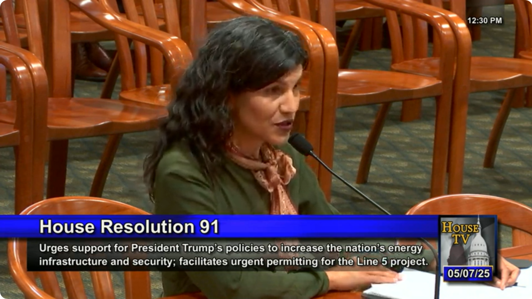 On May 7th, with less than 24 hours notice, Michigan House of Representatives introduced HR 91 "A resolution to support President Trump’s policies to increase the nation’s energy infrastructure and security, which have facilitated emergency permitting for the Enbridge Line 5 project" in the Natural Resources and Tourism Committee.