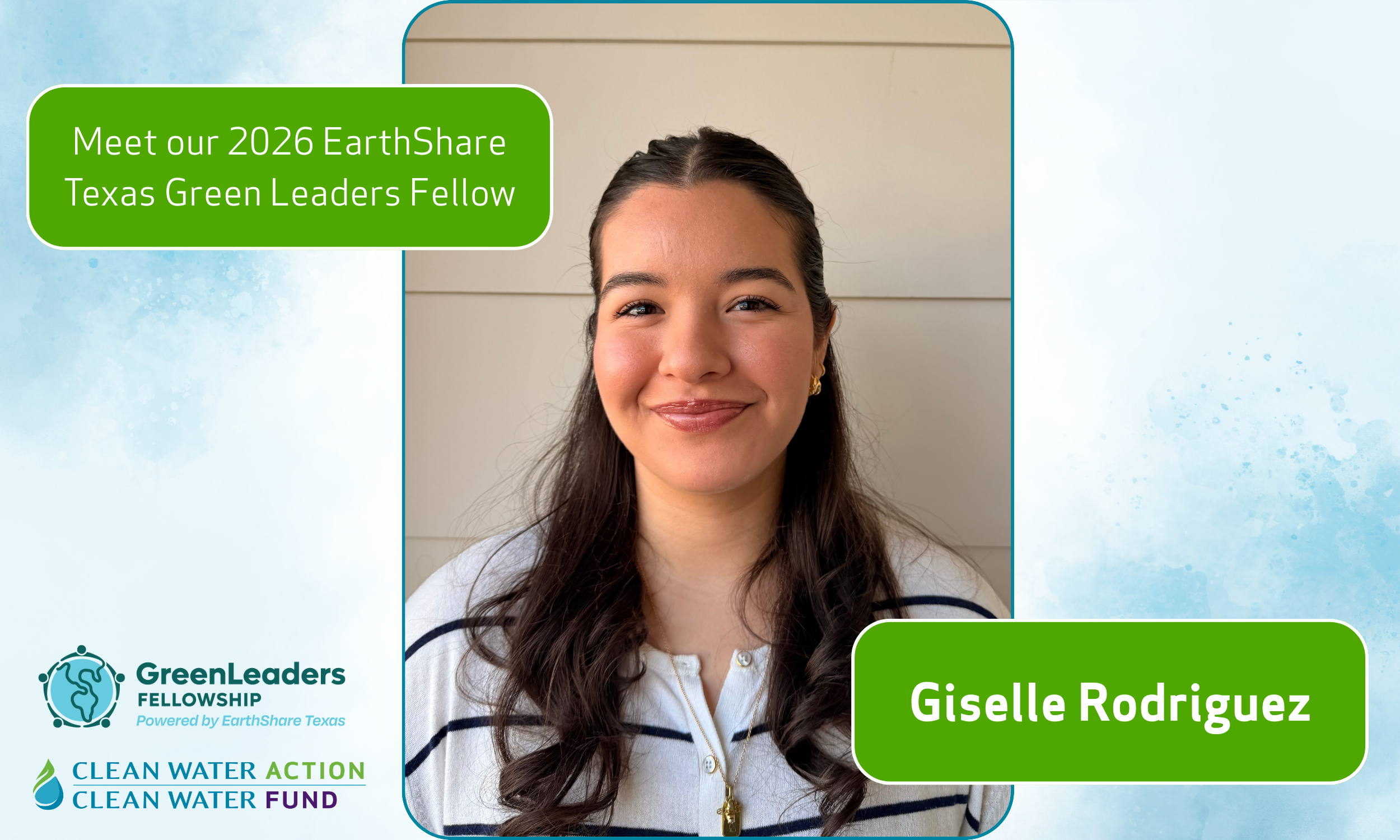 Hello! My name is Giselle Rodriguez and I’m incredibly grateful to have been selected as part of the 2026 Green Leaders Fellowship cohort. I’m excited to be working with Becky Smith, Emily Plunkett, and LaTrice Harrison throughout this journey. With their help, I’m sure I will broaden my understanding of communications and help the team set up systems that expand and strengthen Clean Water Actions' outreach. Below is a brief overview of my background, my environmental journey so far, and what I have learned at Clean Water Action since joining the team in January.