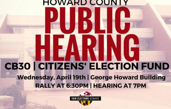 Update: The Howard County Council voted and passed CB30 (the Citizens' Election Fund) on Monday, June 5th! County Executive Kittleman vetoed the bill, so the work continues to overturn the veto. We need you to email or call your councilmember one last time to thank them for voting for a new way to