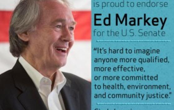 By Cindy Luppi, New England Regional Director I'm proud to report this week Clean Water Action endorsed Representative Ed Markey in the United States Senate race in Massachusetts. For decades, Rep. Markey has been a consistent and powerful friend to all who value clean air, clean water and healthy