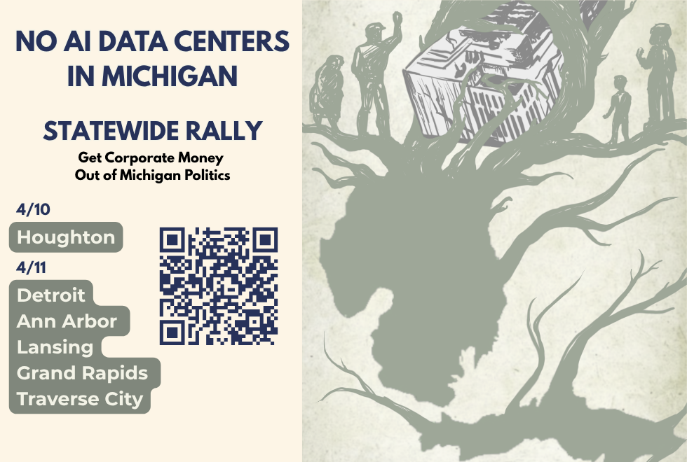 Let’s come together to say YES to community voices, solutions to the data center infiltration, and the Michiganders For Money Out Of Politics initiative to get corporate money out of our politics!